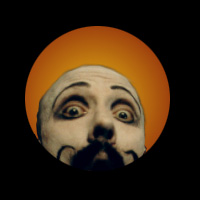 On the other hand, I am drawn to the imagery of commedia dell'arte, an Italian clowning tradition that extends back at least to the renaissance and embodies a whole set of characters and conventions, some widely influential in the development of modern theater and opera. That interest is perhaps one thing that drew me to create this guise. But really I conceived Dead-White Clown out of an intense and mysterious desire to be bald, naked, painted flat white and wearing nothing but a huge collar and a black mustache.