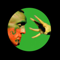 Chief among those elements was the mohawk haircut -- peak point of my week of shaving my head back -- and the desire to use it in a context that had the look of an aboriginal society. Second was my urge to pose in a big skirt. I had imagined a big brocade skirt of many panels that I'd make out of heavy drape material. The effect I was after wasn't exactly feminine: I liked the idea of my bare torso rising out of big, dense swathes of fabric that might drag on the ground in a big train. I thought of the magisterial effect of the big skirts that the heroes and demons wear in in Katha Kali. Being short on the time it would take to build such an ambitious costume, I devised an alternative that I could fashion in a few hours: the skirt is constructed out of several colors of textured window display paper that I had acquired for a project some 15 years earlier.