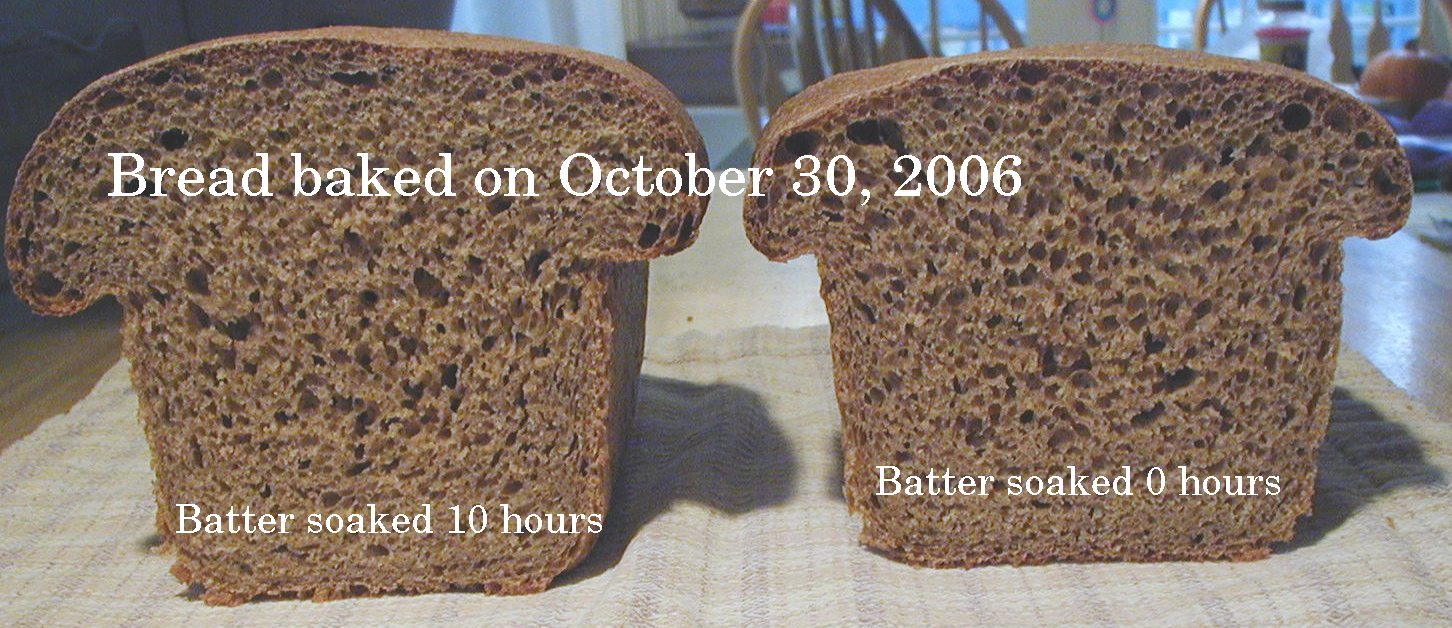 ZERO COMPARED TO 10 and 1/2 HOUR SOAKED WHOLE WHEAT FLOUR ADDED TO A LITTLE STARTER TO MAKE SOURDOUGH BREAD by Helen Dickey --- October 30, 2006