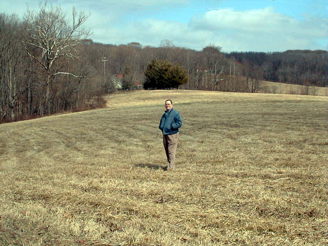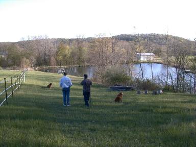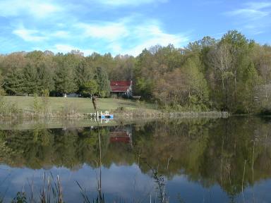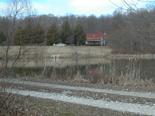 Looking across the pond in front of our new property in Southern Indiana. What a beautiful place this is! I took this picture in February, 1999, the bleakest time of the year, and the land and pond were still very lovely. |