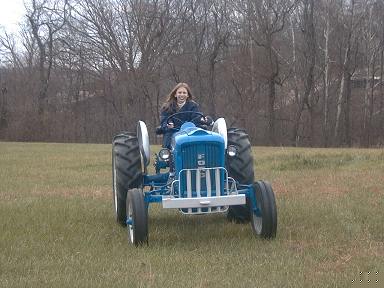 Jewel was learning how to drive Old Babe, our blue tractor. |